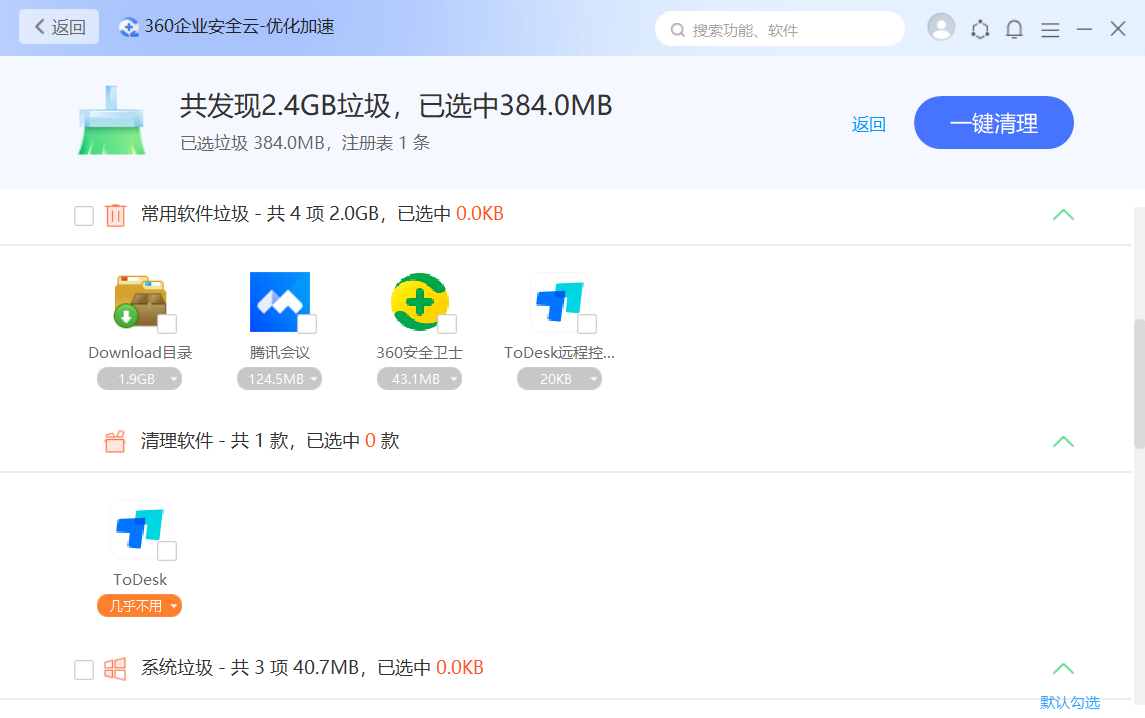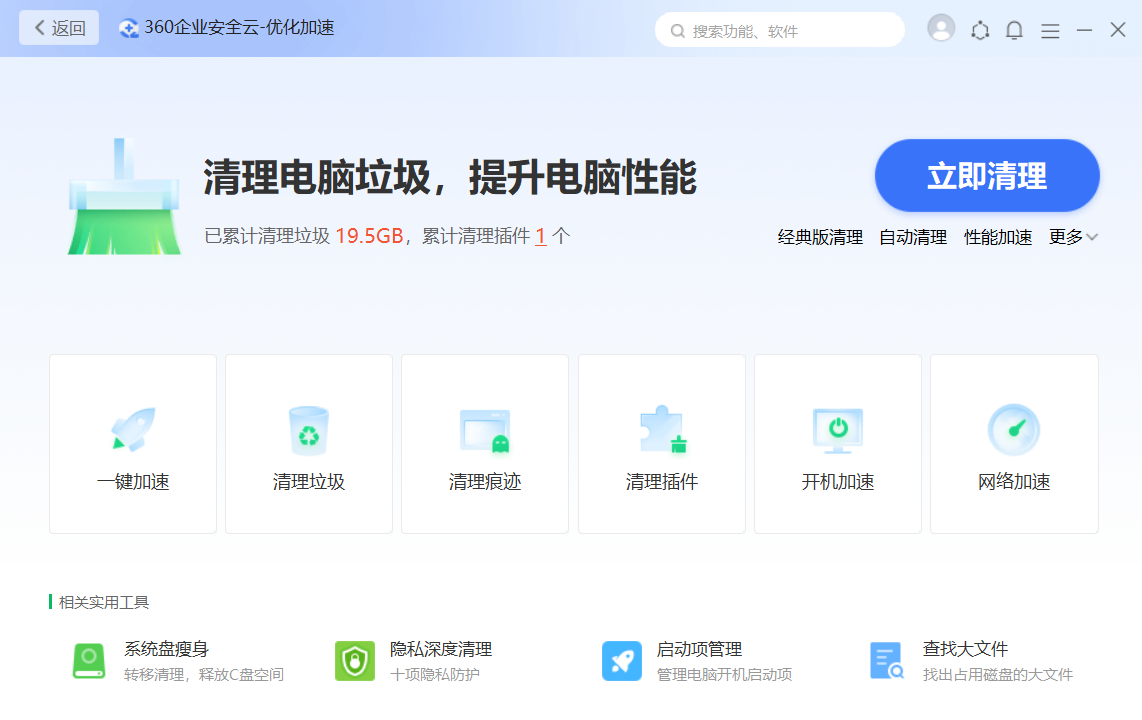 清理电脑垃圾,全面优化电脑性能,轻装运行。